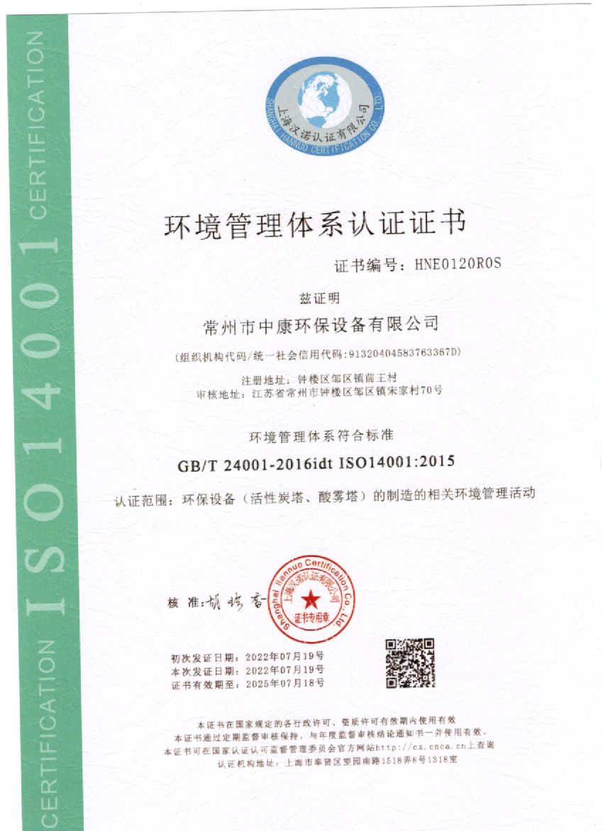 環(huán)境管理體系認(rèn)證證書